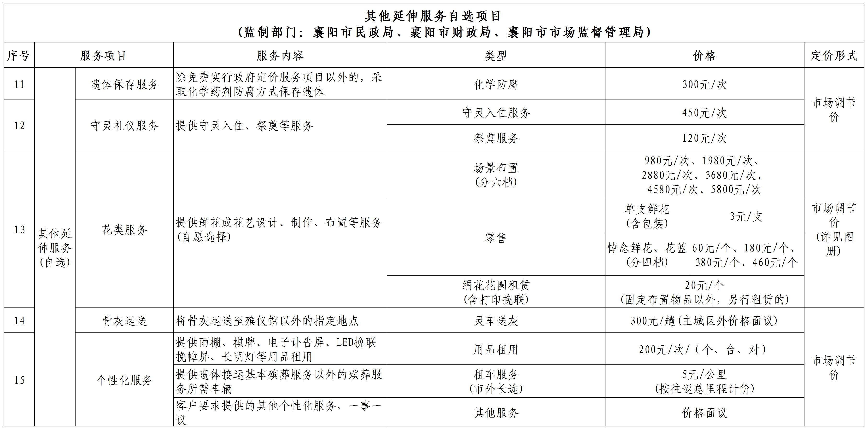 【常规延伸服务自选项目、其他延伸服务自选项目】